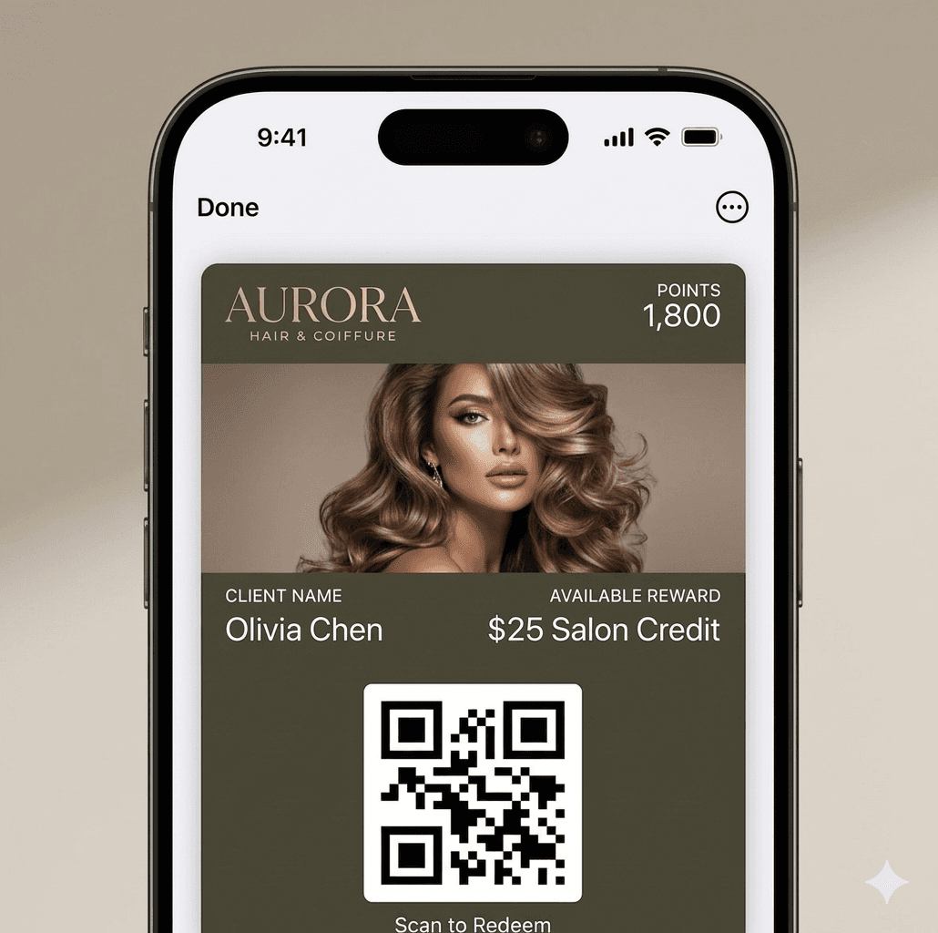 A lead has no way of knowing who you are after 3 months. A Wallet Pass keeps your salon visible at all times.